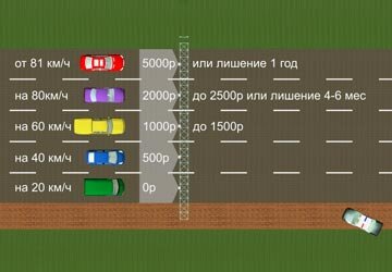 Превышение скорости от 41 км/ч до 60 км/ч - 1000 ₽