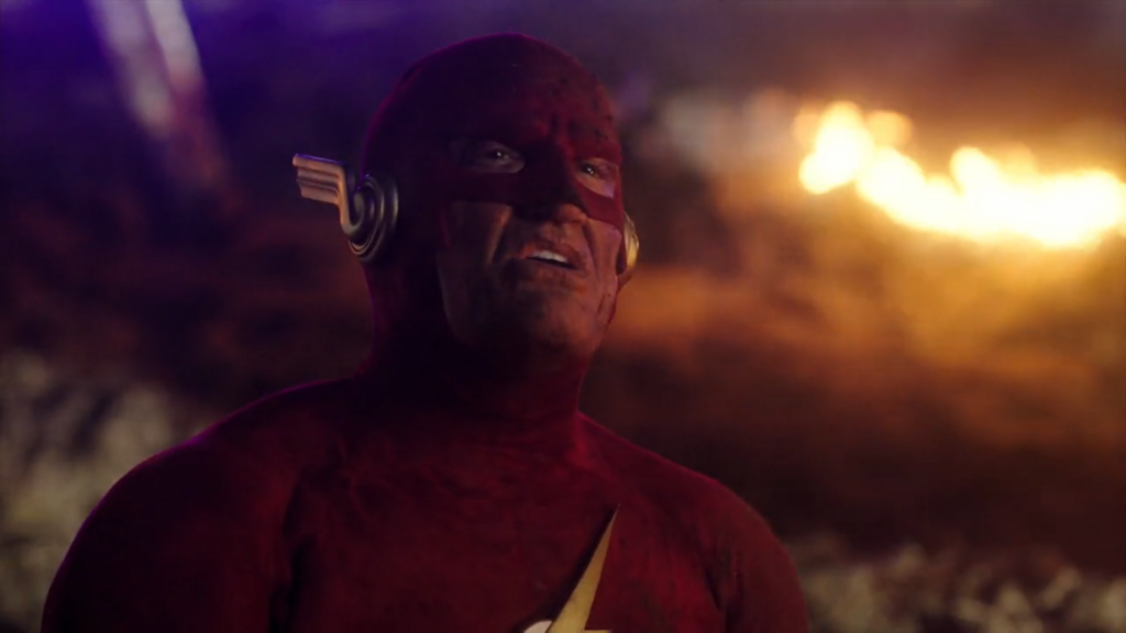 А сцена в которой команда Стрелы и Флэша связывается с Флэшем с Земли-90, визуально очень похожа на сцену из фильма «БпС» в которой Флэш связывается с Брюсом Уэйном. А там это было референсом к «Кризису на бесконечных Землях».
