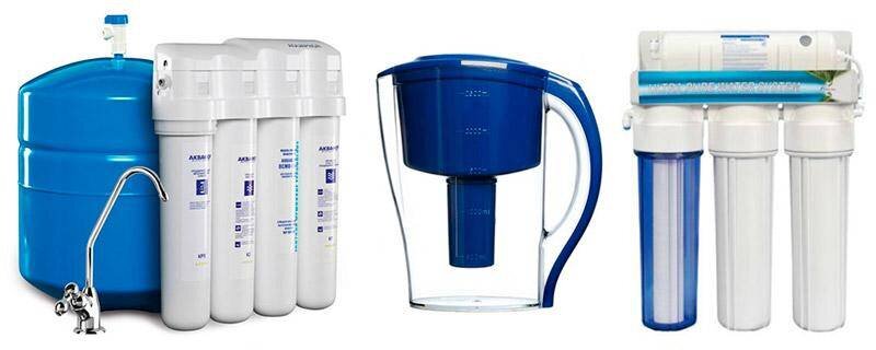 Для небольших объемов условно чистой воды подходят фильтры-кувшины, в поездку на дачу стоит прихватить с собой диспенсер. При повышенной жесткости устанавливается проточный фильтр или система с обратным осмосом «под мойку». При сильной загрязненности поступающей жидкости необходимо обратить внимание на магистральные фильтры, чтобы не пострадала бытовая техника.