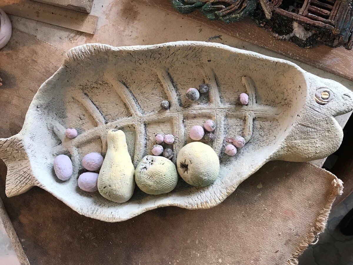 Визуальный ряд экспозиции открывается с произведений Михаила Тарана и Ирины Таран. Это керамические композиции изумительной формы, с ярко выраженной фантазией художников. Здесь и перламутровые пасхальные вариации, и космические импровизации в цветной глине.