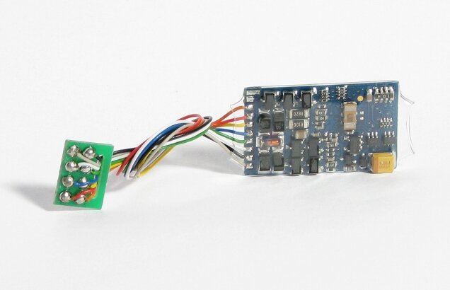 Цифровой декодер бюджетной серии с упрощенной картой CV (всего 14 CV), способный работать в режимах цифрового (стандарт DCC) и аналогового (постоянный ток DC) управления с автоматическим распознаванием типа управления. В нем предусмотрены поддержка 14-, 28- и 128-шагового контроля скорости в режиме DCC и автоматическое определение текущего шагового режима контроля скорости, транслируемого командной станцией. Декодер также поддерживает назначение коротких (1-127) и длинных (0001-9999) адресов локомотивов. Внимание! Декодер не поддерживает режим объединения нескольких локомотивов в "сцепку" (advanced consist mode)*. Он также не поддерживает настройку кривой скорости по промежуточным значениям. Линейная характеристика скорости задается минимальным и максимальным значениями (в CV2 Starting voltage и в CV5 Maximum speed). * Для справки: Локомотив, в котором установлен такой декодер, можно объединить в "сцепку" с любыми другими локомотивами только в режиме universal consis