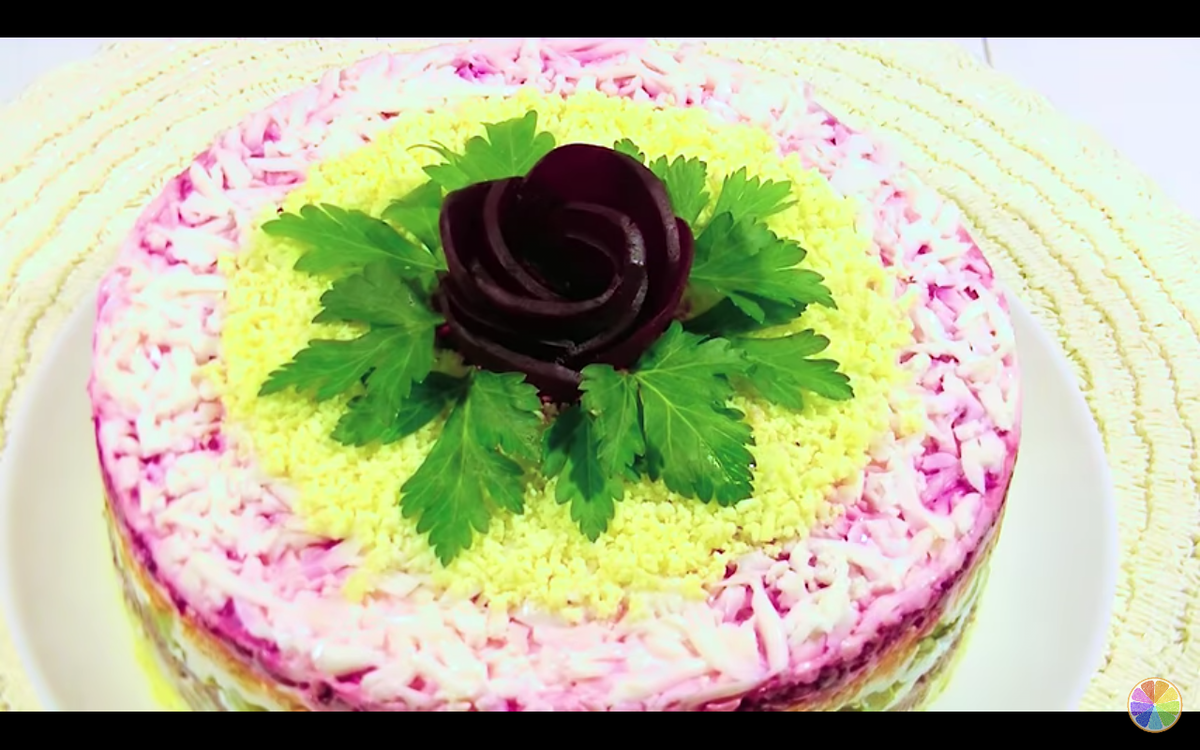 Украшаем розочкой со свеклы, зеленью. Приятного аппетита!