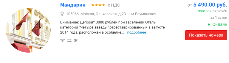 Здравствуйте! В отеле Mandarin Moscow 4* планируют праздновать Новый год в стиле «Карнавальная ночь» – в атмосфере прошлых лет, с юмором и музыкой, которые разбудят ностальгию и поднимут настроение. Профессиональные актеры, калейдоскоп карнавальных костюмов, призы за лучший карнавальный костюм, конкурсы и розыгрыши, живая музыка, ди-джей, танцевальный карнавальный батл – они создадут незабываемую атмосферу новогодней сказки! Расположение и ближайшие достопримечательности. Отреставрированный в августе 2014 года, расположился в особняке Голицына XIX века, в 7 минутах ходьбы от Ярославского, Казанского и Ленинградского железнодорожных вокзалов и в 5 минутах ходьбы от станций метро «Бауманская», «Комсомольская» и «Красносельская». Бизнес-центр «Новь» находится всего в нескольких минутах ходьбы. Какие в отеле категории номеров? Эконом, Стандарт, Бизнес стандарт, Студио, Супериор, Делюкс. Что входит в стоимость проживания? Бесплатный WiFi предоставляется на всей территории отеля. К услугам в