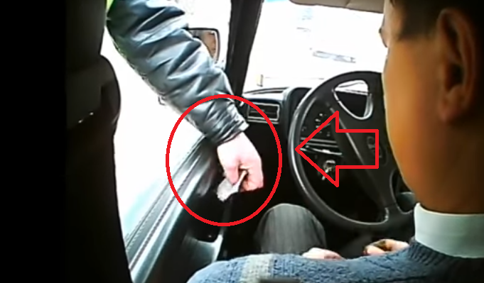 Сотрудником ГАИ был остановлен водитель, который, по всей видимости, нарушил правила ПДД, после чего водитель сразу же достал документы и протянул деньги для взятки. Но сотруднику ГАИ оказалось мало, он посмотрел документы, во время распроса водителя как бы намекнул, что у него еще есть деньги и нужно больше. Когда ГАИшник вернул документы водителю - тот достал оттуда еще купюру и снова протянул её для того, чтоб не понести наказания. В этот раз сотрудник ГАИ быстро взял деньги и начал говорить на отрешенные темы, показывать как проехать в МРЕО. Но водитель уже набирал в полицию, чтоб сообщить о взятке. После чего ГАИшник, все еще не понимая где камеры - сбросил купюры в автомобиль, все так же под присмотром камер. Так что сотрудник ГАИ был задержан с поличным и был уволен. Видео с камер водителя: Так же подпишитесь на наш телеграмм канал, где мы показываем новости, которых никогда не будет в СМИ. Подписаться на канал.