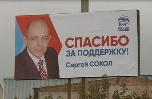 Поствыборный плакат будущего председателя Заксобрания Приангарья Сергея Сокола (фото ТВК, Красноярск)