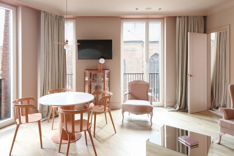 Здание на улице Скарню, 11 вызвало полемику еще на уровне проекта. А уж когда оно было наконец построено и рижане увидели его странный силуэт… Исторический центр Риги включен в Список Всемирного наследия ЮНЕСКО, поэтому новые здания строятся здесь крайне редко, и каждое долго обсуждается жителями города. Здание на улице Скарню, 11 вызвало полемику еще на уровне проекта. А уж когда оно было наконец построено и рижане увидели его странный силуэт… В этом здании, получившем прозвище «термитник», и открылся Redstone Boutique Hotel. В нем шесть этажей и всего 11 номеров. У каждого этажа свой цвет. Третий окрашен в оттенки Балтийского моря, четвертый — розовый, как рассвет в Юрмале, пятый — молочно-белый. Шестой называется «Голубая лагуна» и все в нем нежно-голубого цвета. В каждом номере есть двуспальная кровать размера king-size, небольшой письменный стол или просто откидная доска, на которую можно поставить ноутбук, душ и панорамные окна. А за окнами – то, ради чего в Ригу приезжают тысяч
