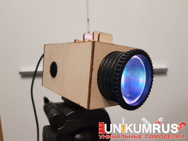 Корпус проектора вырезаем из фанеры лазерным резаком. Файл можно скачать