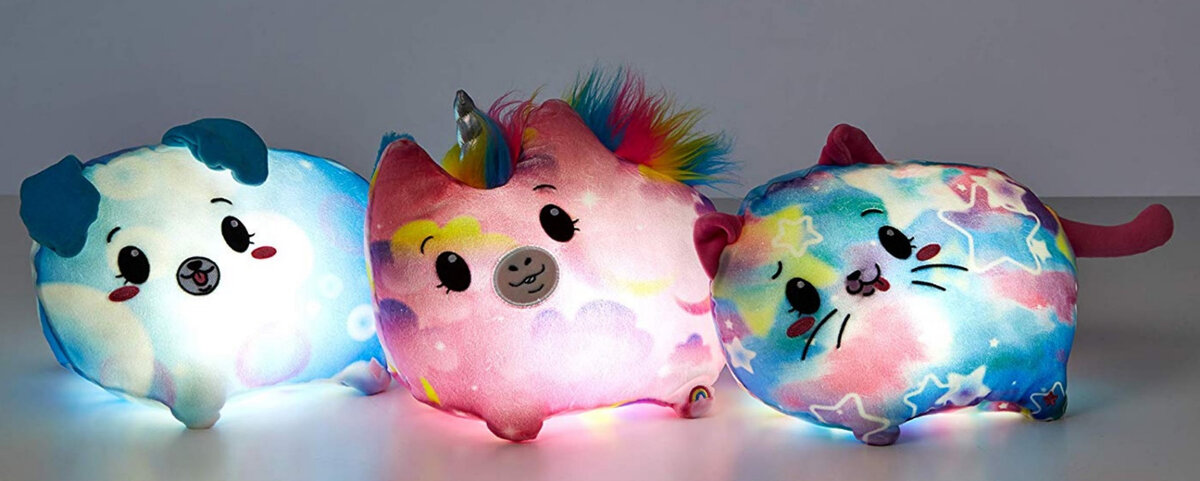 Из мира PIKMI POPS приходит целый ряд новых, мягких плюшевых друзей, чтобы осветить вашу жизнь! Супер мягкий и приятный материал. Jelly Dreams - это ряд легких плюшевых игрушек, которые не могут дождаться, чтобы выскочить из своих упаковков-стручков Jelly bean и засиять в ваших руках. Pikmi Pops Jelly Dreams - это 11-дюймовые (около 25 см) плюшевые игрушки с тремя режимами подсветки: режим полной яркости, половинный режим яркости, и режим биения сердца (нежное пульсирующее зарево). Супер мягкая и приятная плюшевая игрушка будет радовать вас приятным свечением в течение многих часов, потому что она создана для бесконечных объятий. Соберите всех очаровательных персонажей, в том числе Пожелания (единорог Wishes), Вспышку (собака Glint), и Двойняшку (кошка Twin). Они такие приятные на ощупь, что вы не сможете выпустить их из рук! А подсветка добавляет игрушке немного волшебства. Каждый питомец приходит с листом светящихся в темноте наклеек, которые содержат приятное сообщени