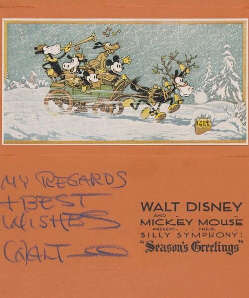 На открытке 1998 года была использована оригинальная сезонная поздравительная открытка 1934 года, посвященная 75-летию со дня основания компании Walt Disney в 1923 году.