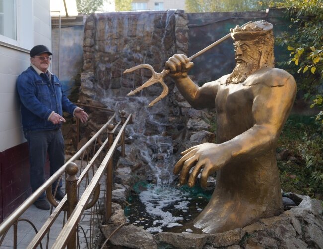 Во дворе небольшого частного дома среди искусно созданных водоемов стоят позолоченные скульптуры, охраняемые чудовищами. Автор этих творений - шестидесятитрехлетний Александр Тимофеев, инженер-механик по профессии и скульптор «по крови» (брат его бабушки – известный скульптор). В качестве строительного материала ваятель использует бетон и пену. Сначала изготавливает проволочный каркас задуманной фигуры, заматывает сеткой, обертывает линолеумом, затем заливает бетонным раствором. После затвердевания приступает к скульптурным работам. На изготовление самой большой скульптурной композиции у Александра Тимофеева ушло полторы тонны щебенки и 15 мешков цемента, а на одного из чудовищ – 30 банок монтажной пены. На четырех сотках звери рассредоточились в разных уголках двора и совсем вытеснили грядки с луком, но жена одобряет творения мужа. При помощи пультов управления Александр Дмитриевич мгновенно оживляет весь двор. Шумно заливается отвесный водопад, омывая бюст, словно вынырнувшего из воды Посейдона с трезубцем. Чудовища - громадный дракон и трехметровый Кинг-Конг - двигают руками, раскрывают пасть, сверкают глазами и рычат; к воротам ползет зубастый крокодил.