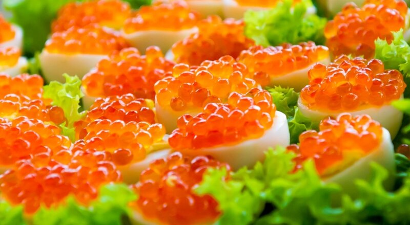 Безумно вкусная закуска на праздничный стол! Готовится очень просто и быстро! Имеет только один маленький недостаток - съедается гостями очень быстро и в первую очередь :-) Ингредиенты: Яйца - 10 шт. Сыр (твердый) - 250 гр. Печень трески - 1 баночка Майонез - по вкусу Соль - по вкусу Перец черный молотый - по вкусу Икра красная - по вкусу и для украшения Листья салата - для сервировки Спасибо за лайк и подписку! Добро пожаловать на канал "Мужчина на кухне"! Приготовление: 1. Яйца сварить вкрутую и почистить. 2. Аккуратно разрезать яйца на две половинки и удалить желток. 3. В печень трески (предварительно слив масло) добавить желтки, майонез, натертый на терке сыр. Посолить, поперчить. 4. Довести погружным блендером массу до однородной консистенции. 5. Полученной массой наполнить половинки яичного белка. 6. Сверху равномерно выложить слой красной икры (а можно чередовать с черной икрой. Ну очень красиво получается). 7. Уложить фаршированные яйца на блюдо, выложенное листьями салат