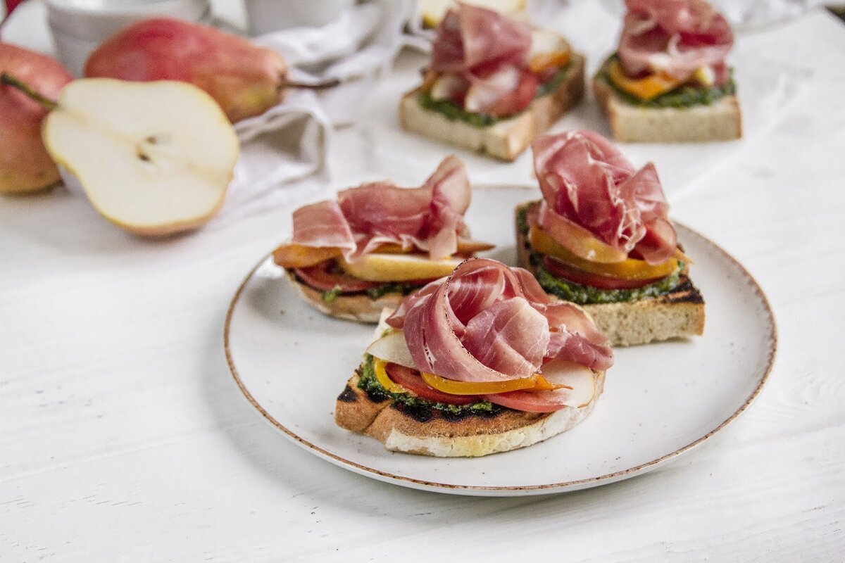 А вы знали, что грушевое дерево используется для производства мебели, музыкальных инструментов и поделок из дерева? Также его используют для изготовления кухонной утвари, потому что это дерево не передает цвет или запах еде. И потому что оно достаточно прочное, чтобы пережить мойку в воде. Линейки архитекторов делают из грушевого дерева, потому что они не деформируются Хлеб цельнозерновой 0,5 шт. Перец-гриль 100 г Соус Песто 50 г Прошутто 1 уп. Груша 1 шт. Помидоры 1-2 шт. Время приготовления 5-10 мин. Мои рецепты Маковый торт простая закуска вкусный завтрак