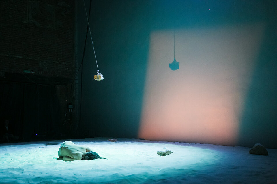 Это абсолютная перформативная сенсация. Как по российским, так и по мировым меркам. Здесь нет режиссера в привычном понимании. Здесь 5 человек — художник по свету, художник-постановщик, композитор, перформер и продюсер Ника Пархомовская — выступают на равных. Каждый вносит свой вклад, и всё начинает работать друг на друга. Все складывается в единое целое порой словно прямо у тебя на глазах. Вот Гарафеева обнаруживает себя в пространстве, созданном Перетрухиной, вот ее начинает вести свет Матиса, а вот она уже вступает в телесный диалог с саундом Ретинского. От происходящего возникает непреодолимое ощущение, что хореография и действие не задуманы заранее, а рождаются прямо здесь и прямо сейчас.