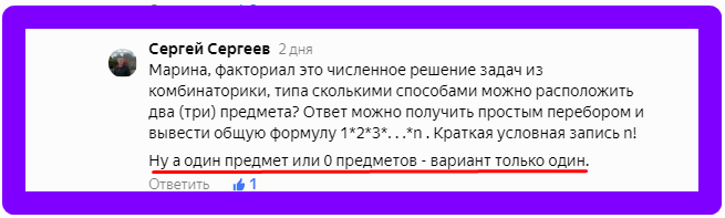 Но на всякий случай напомним, о факториале словами нашего читателя Сергея Сергеева.
