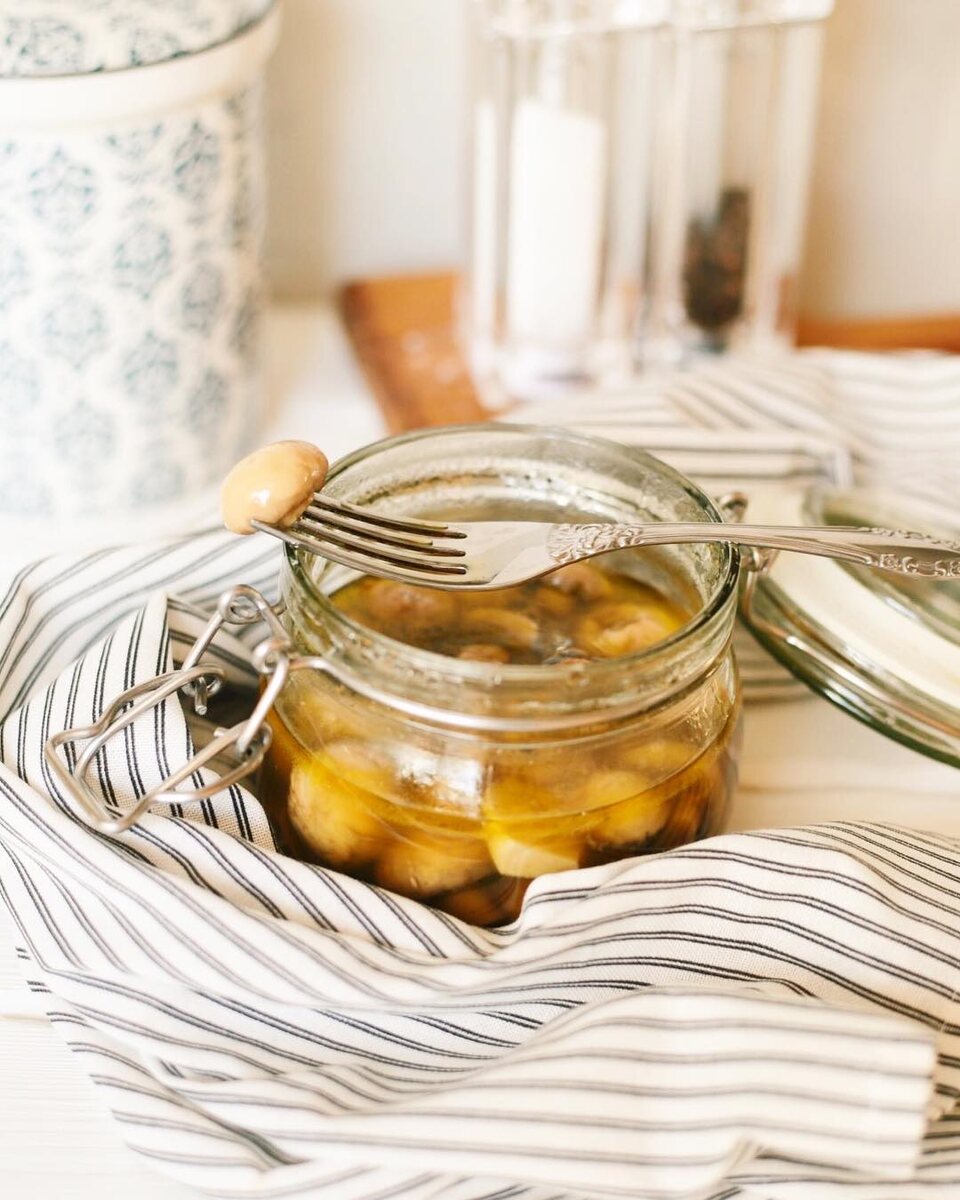 Эй! До Нового года остается всего две недели! А сколько нужно всего успеть! Э-э-э-э... Что я еще забыла? Помогите мне вспомнить! А я пока помогу вам с меню ;-) Шампиньоны - пятиминутки (должны быть на каждом новогоднем столе!) 1) шампиньоны очистить. Этот шаг можно пропустить. 2) Смешать все ингредиенты для маринада в сотейнике и довести до кипения. Бросить грибы и 5 минут все поварить. 3) Затем переложить в банку, остудить и убрать в холод. Они вкуснее, чем из магазина! Я вас уверяю.