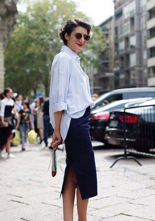 Самая базовая вещь, которая незаменима для женщин после 40 С белой рубашкой Один из лучших вариантов сочетания юбка с классической белой рубашкой прямого кроя. Достаточно подвернуть рукава и заправить рубашку в брюки, чтобы превратиться в хрупкую и изящную, современную и изысканную. Отлично подойдет для работы. Со свитером Главное правило стилистики: сочетание облегающего низа и свободного верха или, наоборот, облегающего верха и свободного низ. Комбинация юбки-карандаш с объемным свитером как раз отвечает этому требованию и делает пропорции силуэт более гармоничными. С жакетом Все та же юбка-карандаш отличная пара для свободного жакета на мужской манер и еще один вариант в офисном стиле. Жакет лучше носить не застегнутым - это актуально и модно. С футболкой Лаконичная элегантная юбка и современная молодежная футболка - лучший вариант для женщин после 40, который сделает образ свежим, интересным и актуальным. С косухой Элегантность и классика в сочетании с трендовыми молодежным