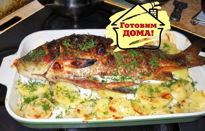 Вы любите рыбу так, как люблю её я!? Тогда этот рецепт вам придётся по вкусу. Блюдо очень простое и в то же время невероятно вкусное. Хорошо подойдёт для семейного ужина. Для приготовления нам понадобятся: Карп свежий 1 кг картофель 6 шт. лук 3 шт. сметана 150 г специи для рыбы 0 на свой вкус ПРОЦЕСС ПРИГОТОВЛЕНИЯ КАРПА В СМЕТАНЕ: Для начала нам необходимо подготовить рыбку. Нашего карпа почистите, хорошо промойте. Затем натрите его солью и любимыми специями.Я использую покупные специи "Для рыбы". Положите ему в брюшко половину пучка укропа. Следующий этап. Подготовим картофель и лук.Их необходимо почистить и нарезать кружочками. Глубокий, противень смажьте оливковым (или подсолнечным) маслом. Сначала на противень выкладываем нарезанный картофель и лук, немного подсолите. На подготовленную "подушку" из овощей, сверху, выкладываем карпа. И всё блюдо заливаем сметаной, слегка разведенной водой. Ставим карпа в духовку на 25 минут. Температура 180 градусов. Рекомендую включить гриль
