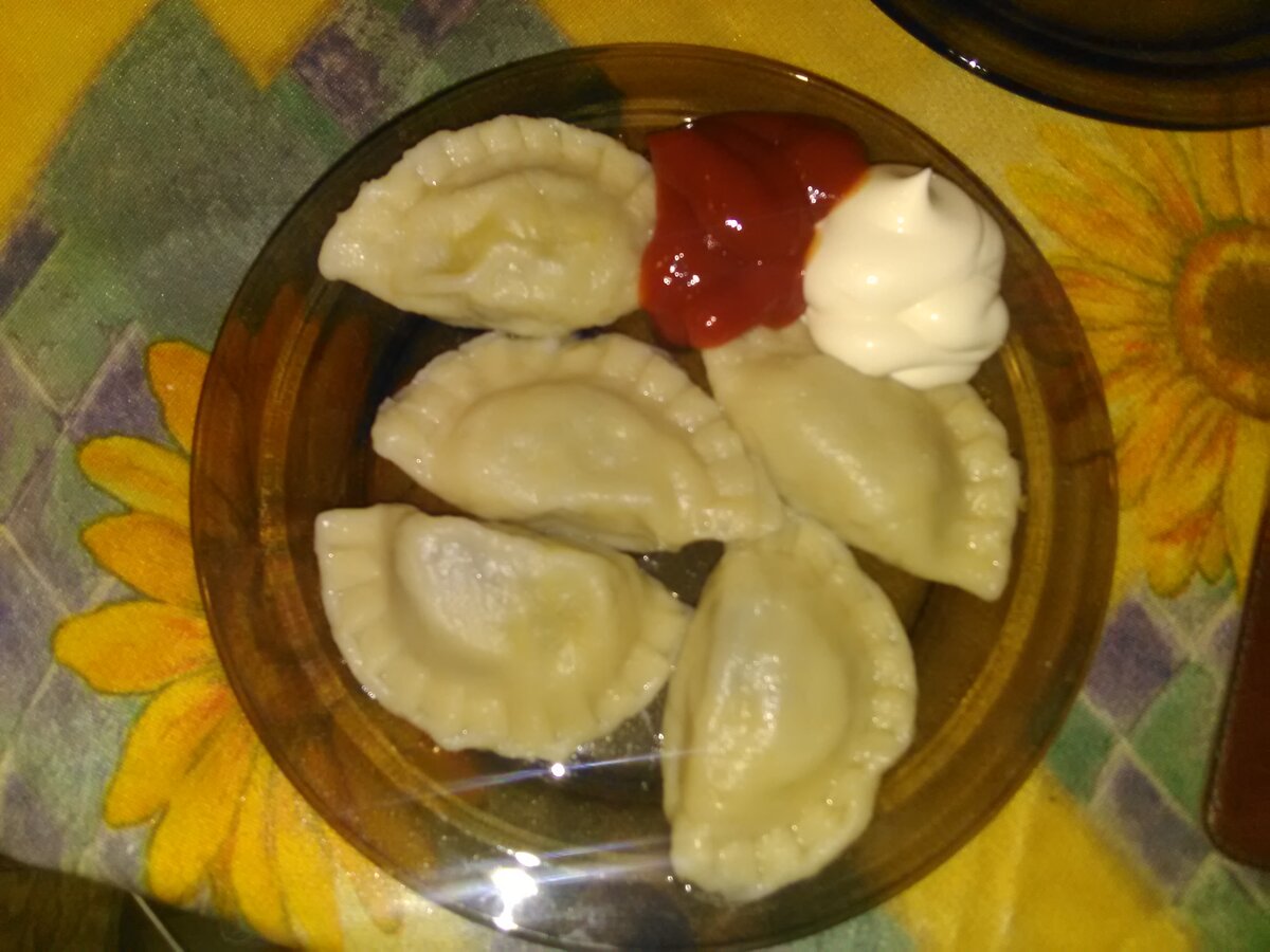 Нам понадобится: мука 500 г, яйца 2 шт, холодная вода, соль 1/2 ч.л., картофель, грибы (у меня варёные, с лета хранились в морозилке) но можно и в магазине приобрести, шампиньоны например. Для начала ставим вариться картофель И обжариваем наши грибочки с луком И пока готовится начинка замесим тесто: Просеиваем муку (кто сразу на столе делает, а я начинаю замешивать в миске), бьём 2 яйца в отдельную ёмкость и разбавляем водой так, что бы получилось 250 мл., солим.Я решила сделать немного больше теста чем в рецепте, поэтому на фото 3 яйца, и всего остального по пропорции побольше. Замешиваем крутое тесто, пока не перестанет прилипать к рукам. Накрываем миской или полотенцем и оставляем на 30-40 минут. В это время наша картошечка уже сварилась, давим пюре и смешиваем с жареным луком (солим по вкусу, если надо), ставим немного остудиться. Итак, у нас все готово, начинаем лепить наши вареники. Сегодня я решила испытать приспособление, купленное на "Джуме". Достаточно прикольные штуки, кр