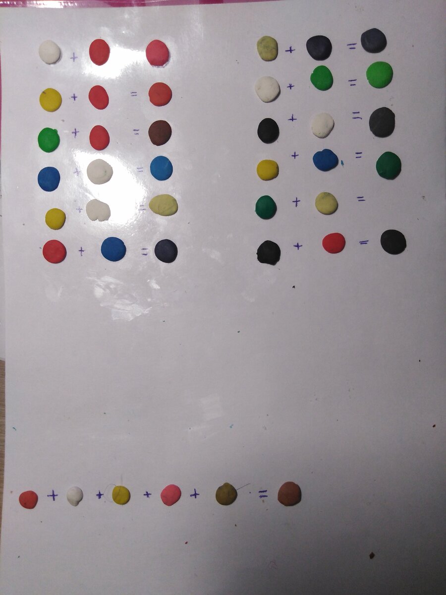 Добрый день! Сегодня делимся с вами маленькими секретами при работе с пластилином! 😉 Несмотря на то, что коробки с пластилином содержат разные цвета и оттенки, в отдельных ситациях хочется выполнить какой-то свой особенной цвет или оттенок. В таком случае следует научится правильно смешивать цвета! При смешивании разных цветов пластилина нужно соблюдать некоторые пропорции, для того чтобы получить необходимый оттенок. КАК СМЕШИВАТЬ? Технология очень проста: 1. Сначало подержите кусочки пластилина в руках, чтобы они согрелись стали мягче и пластичнее. 2. Скатайте два шарика. 3. Сделайте из них лепешки и наложите одна на другую. 4. Сминать лепешки до тех пор пока не получится желаемый цвет. Иногда нужен не совсем однородный цвет пластилина, а с небольшими или наоборот, крупными прожилками цветов. Пластилин, перемешанный до неоднородного цвета, ещё называют мраморным и им часто пользуются при выполнении цветов, листьев, травы и тп. Эксперементируя со смешиванием цветов пластилин