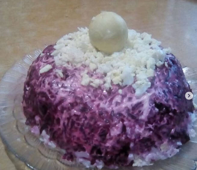 Вы спросите почему название салата под шубой,а не селедка под шубой-ответ прост-селедки тут не будет)Салат отлично подходит для праздников и торжеств,а так же отличный ужин в будний день в силу своей простоты изготовления,дешевизны и доступности продуктов.Праздник каждый день вообщем)Пир живота)Перейдем к делу: Огурец соленый 1 шт лук репчатый 1/2 луковицы картофель 3 шт(средние) свекла 1 шт яйца 2 шт Варим наши овощи.Картошку я варю вместе со свеклой,просто раньше вытаскиваю,яйца в принципе тоже.Пока варятся овощи чистим и мелко нарезаем лук,как показано на картинке так же мелко режем соленые огурцы(подойдут и маринованные) Когда все наши овощи сварились чистим их и трем на крупной терке После этого начинаем укладывать слоями и промазывать каждый слой майонезом первый слой картофель, затем огурцы с луком, потом опять картофель смазываем майонезом,затем слой из яиц и снова слой майонеза.Посл