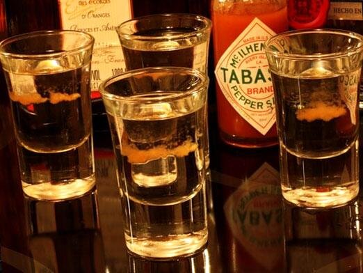 соус табаско — 2 мл Приготовление: Все компоненты охладить. В стопку влить самбуку. Затем аккуратно, по барной ложечке, влить текилу так, чтобы она не смешивалась с самбукой. Затем капнуть табаско. Напиток можно закусить лаймом, по аналогии с текилой. Если вы всё делаете правильно, то получите прозрачный напиток с огненно-рыжими каплями острого соуса. Именно благодаря этим вкраплением красно-оранжевого цвета тобаско и за остроту коктейль и получил название. Появился коктейль в конце двадцатого века в бывшем СССР, видимо как дань тому, что в стране появились разные напитки и продукты из-за рубежа. Склонные к авантюрным экспериментам россияне создали острый и крепкий коктейль из разряда разящих на повал. Источник: https://www.primedrink.ru/alkogolnye-koktejli-recepty-koktejlej-kak-delat-koktejli-doma/koktejl-ryzhaya-sobaka/