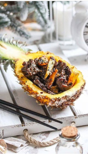 Как же это вкусно и просто.Можно петь оды этому блюду.Как всегда никаких хлопот.Наш девиз перед праздником главное не устать.Мясо получается необыкновенное.Отличная закуска под шампанское под бой курантов. Берем свежее ваше любимое мясо .Рекомендуем мрамрную говядину или хорошую баранину.Обжариваем быстро на сковороде до румяной корочки,не пересушить.Пока мясо жарится ,наш ананас или ананасы режем на две части ,вырезаем мякоть,часть режем на стол к фруктам,несколько долек оставляем.Важно сок который образовался при резке оставить для маринада. Выкладываем наше жаркое в ананасы,перекладывая дольками ,поливаем ананасовым соком,солим по вкусу,приправы по вкусу(только без чеснока)Ставим в духовку ,минут на 20-30 до подрумянивания.Наше жаркое в ананасах готово!А как вкусно ,мясо все пропитано ананасовым соком.Да и сам ананас просто хорош до безобразия.Для любителей сыра,можно посыпать сыром минут за десять до готовности.Но рекомендуем вариант без сыра. Ставь лайк и подпишись на канал