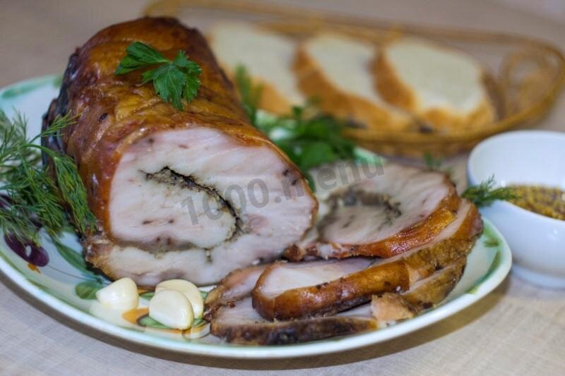 Пузанина, она же подчеревок или брюшина – это что-то среднее между мясом и салом. Что только не готовят из этой части свинины. Ее запекают, варят, добавляют в мясной фарш, тушат с овощами. Рулет из пузанины – аппетитное, сытное блюдо. Рецепт не сложный, результат отличный. Самое главное здесь правильно выбрать брюшину. Она должна быть с хорошей прослойкой мяса и не толстой, иначе плохо будет сворачиваться. Подают ее в качестве дополнения к первым блюдам или в виде закуски с горчицей или хреном. Ингредиенты · пузанина – 1,3 кг; · чеснок – 6 зубчиков; · поваренная соль – 1,5 ч. л; · хмели-сунели и смесь перцев – 0,5 ч. л; · черный перец (свежемолотый) – по вкусу Пошаговое приготовление Подчеревок посыпаем приправами, солим и перчим. Для большего аромата используйте перец горошком, измельченный в ступке. Состав хмели-сунели поражает воображение. В приправе присутствуют: мята, укроп, чабер, фенугрек, красный перец, сельдерей, кориандр, лавровый лист. Но, каждый может использовать специи