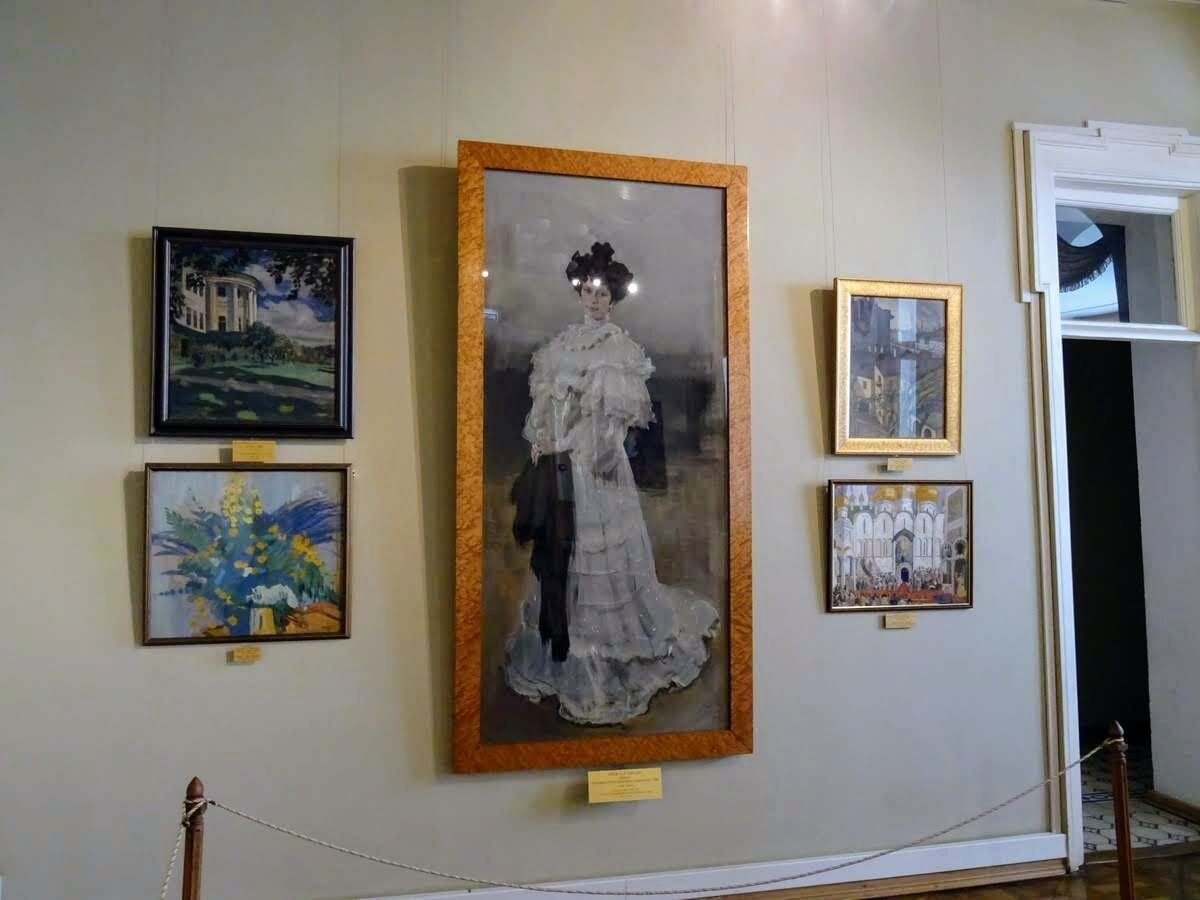 Картины впечатлили и цветовыми гаммами и своей монументальностью. Тут были полотна и в полный рост, такие как этот «Портрет Елизаветы Красильщиковой» кисти Валентина Серова, написанный ещё в 1906 году. Зайдя в зал, вы сразу видите эту миловидную даму в белом нарядном платье с массой оборочек.