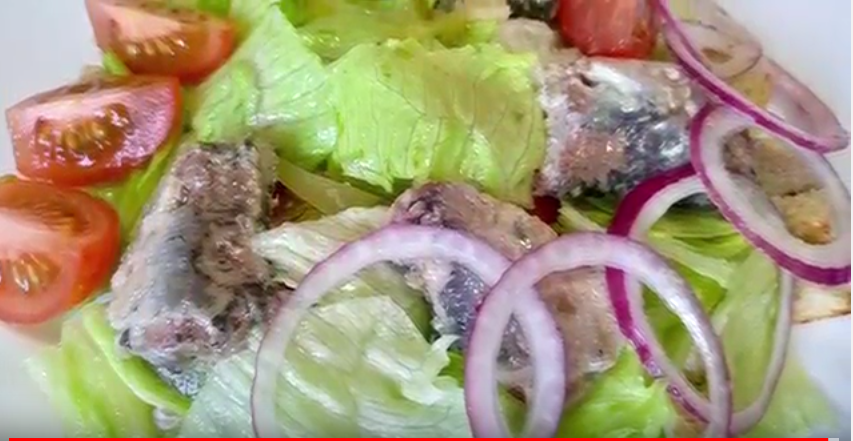 Друзья!Сегодня предлагаю приготовить вкусный и полезный салат "Легкий" который займёт достойное место на вашем столе. Давайте готовить! 1.С ломтиков хлеба срезаем корочку и нарезаем мелким кубиком,поджариваем нм сухой сковороде до золотистого цвета. 2.Листья салата Айсберг крупно нарезаем,помидорки разрезаем на четверо,лук колечками, маринованные огурцы короткой соломкой. 3. В миску складываем листья салата,помидоры, огурцы,лук и сухарики и заправляем маринадом из консервы, если надо солим перчим,добавляем сок лимона.Всё хорошо перемешиваем и выкладываем на тарелку,а сверху на салат укладываем кусочки рыбы и украшаем кольцами лука. Салатик готов! Приятного аппетита! Более подробный процесс приготовления смотрите в видео Ингредиенты для приготовления салата: 1 банка(240г) рыбных консерв в масле или натуральн. 1—2 солёных или маринованных огурца 4 ломтика хлеба( обрезать корочку и подсушить на сухой сковородке) или готовые сухарики 2—4 помидора Салат Айсберг или пекинская капуста Сок