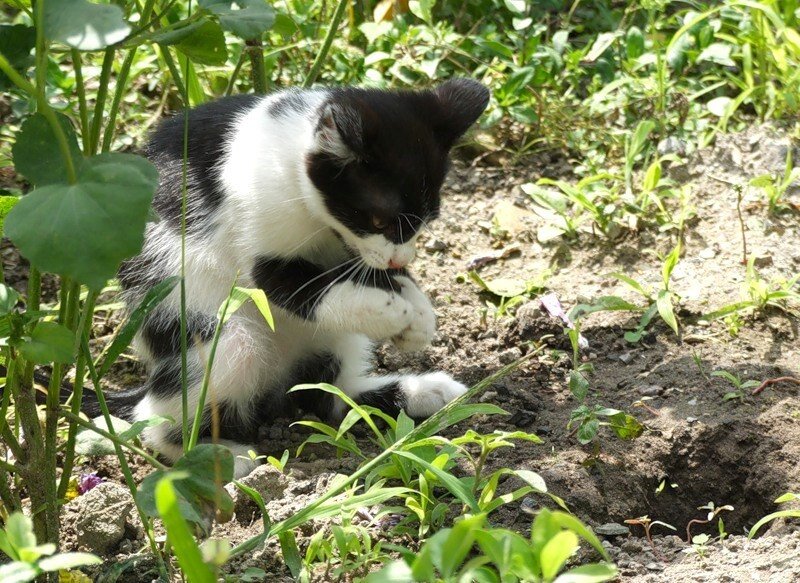 Кошки очень часто показывают нам, как правильно надо себя вести. Причем иногда людям становится даже стыдно за свое поведение, ведь животное-то и то понимает, что хорошо, а что плохо в отличии от человека. Однажды рядом с остановкой стояла группа молодых ребят. Они ждали свой транспорт и громко общались между собой. Двое парней курили и бросали окурки от сигарет прямо на землю. Потом они сбегали в киоск за шоколадками. Через пару минут обертки от конфет тоже полетели на землю. В этот момент к остановке подошел обычный дворовый кот. Он нес во рту рыбную голову. Видимо его угостили в ближайшем рыбном магазине. За остановкой он приступил к своей трапезе. Однако всю голову он не съел, оставив несъедобные объедки. Однако кот и не думал уходить после того, как перекусил. Он стал отчаянно грести лапами землю. Когда довольно объемная ямка была вырыта, то кот сложил туда недоеденные остатки рыбы и тщательно все закопал. За его действиями следили м