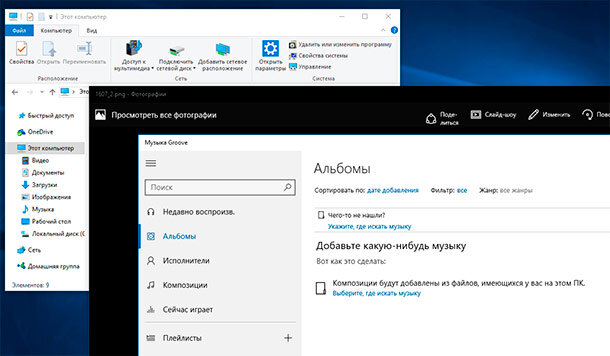 Если этого не сделать, то пользователь рано или поздно столкнётся с ситуацией, когда среди огромного количества папок найти нужный файл станет невозможно. Также, неправильное хранение файлов есть частой причиной их случайного удаления или утери. В Windows 10 сделано всё, чтобы помочь пользователю с организацией медиа файлов. Кроме основных, уже знакомых с предыдущих версий Windows, встроенных папок с названиями Изображения, Музыка и Видео, есть также другие предустановленные инструменты. Речь идёт об облаке OneDrive, а также приложениях Фотографии и Музыка Groove.