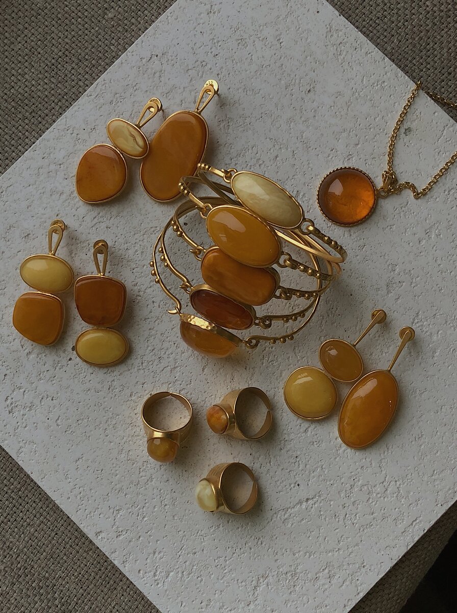 Привет! В качестве основы наших изделий мы используем серебро 925 пробы, этот метал является для нас главным на протяжении всей жизни нашего производства. В большинстве моделей коллекции он покрыт матовым золочением, потому что именно оно идеально сочетается с состаренным янтарем, имеющим рыжие и коричневые оттенки. В том числе - безусловно - белым янтарем. Гальваническое покрытие - это нанесение тонкого слоя метала на изделие для его защиты и красоты. Но такая «одежда», в том числе и позолота, к сожалению имеет свойство изнашиваться. Сейчас мы дадим вам несколько правил как сохранить первоначальный вид: - снимайте украшения перед тем как мыть руки - мы понимаем, что цвет золота прекрасно смотрится на загорелом теле, но все же, не купайтесь в наших украшениях в море или в бассейне - пожалуйста, снимайте украшения перед тем как решите позаниматься спортом - храните их в темном месте, без попадания солнечных лучей - иногда украшения можно протирать специальными салфетками для ухода за