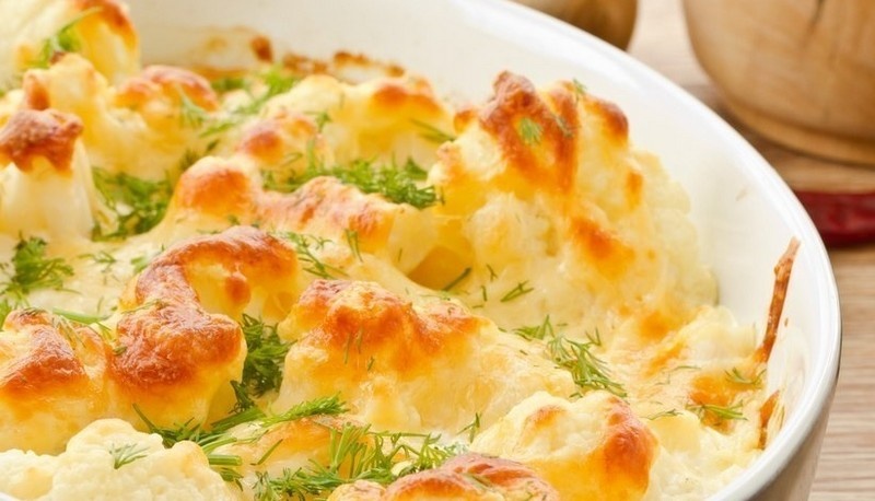 Для приготовления запеканки из цветной капусты потребуется 800 грамм цветной капусты, пара столовых ложек сливочного масла, одна столовая ложка муки, одна чайная ложка соли, полстакана молока, три куриных яйца и душистый перец.