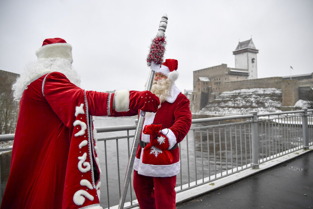 Эстонский Санта-Клаус и русский Дед Мороз встретились на мосту Дружбы