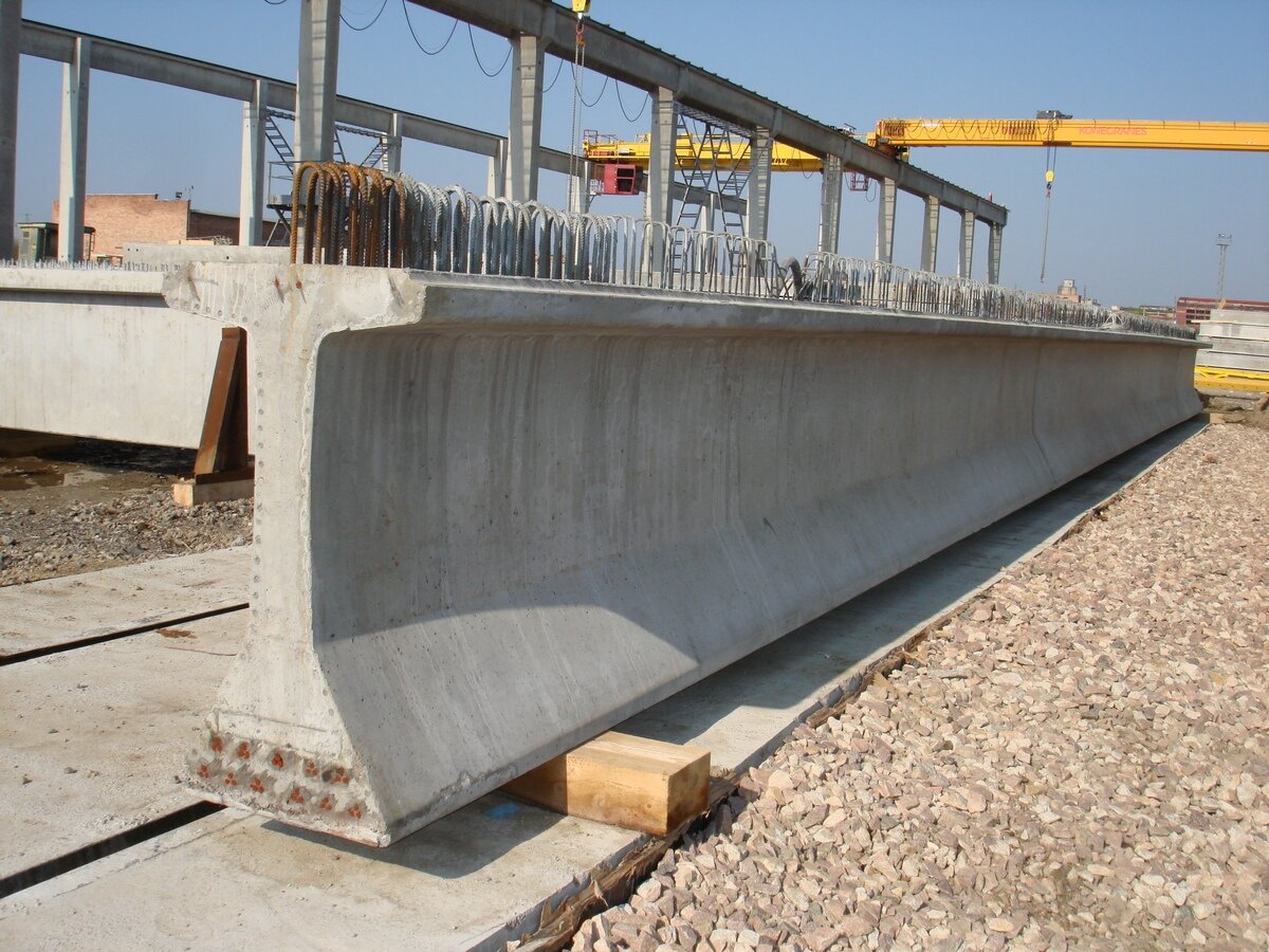 Чтобы построить либо реконструировать мостовые конструкции или путепроводы, нужно использовать изделия из железобетона, обладающие повышенной прочностью. Речь идет о специальных мостовых балках. Производство подобных элементов осуществляется в соответствии с индивидуальными проектами либо типовыми сериями. Существует несколько разновидностей мостовых железобетонных балок: Данные конструкции изготавливаются с применением высококачественных материалов, имеющих определенные особенности и маркировку, а также соответствующие действующим нормативным требованиям. Мостовые железобетонные балки производят из портландцемента марки ПЦ500 или выше. Наполнителем служит крупнофракционный гранитный щебень, а мягким заполнителем – кварцевый песок. Конструкции армируются стержнями или проволокой. Мостовые балки из железобетона имеют малую высоту сечения, отличаются легкостью и быстротой установки. Как правило, при их изготовлении используют арматуру с предварительным напряжением. Эти конструктивные э
