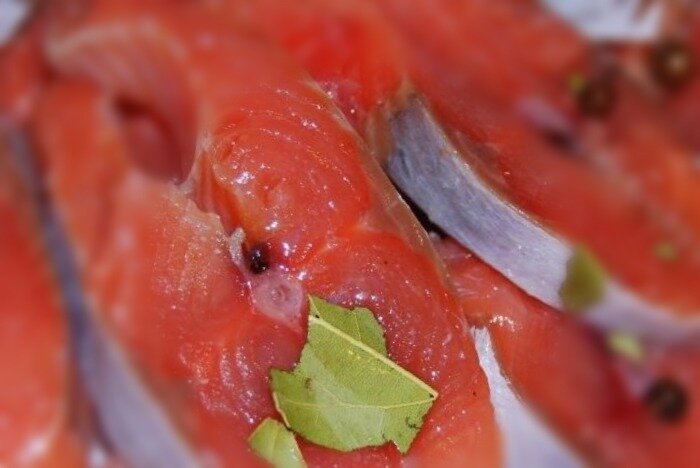 Растительное масло Как приготовить: 1. Для начала нам понадобится кастрюля. Туда вливаем литр воды и добавляем соль, а пока она кипятится займёмся подготовкой рыбы. Берём горбушку, удаляем тушку а также косточки внутри. Нарезаем кусочками и выкладываем их в ёмкость. 2. Когда вода в нашей кастрюле остынет выливаем её к нашей рыбе в ёмкость. Оставить рыбу в растворе на 5 часов. После этого нужно будет слить воду и оставить рыбу ещё на 5 часов. 3. По истечению времени рыбу обмакиваем в растительное масло и кладём обратно в ёмкость. Для украшения нарезаем лук кольцами и выкладываем его. Приятного аппетита ! Подписывайтесь на канал, чтобы первыми видеть наши новогодние рецепты !