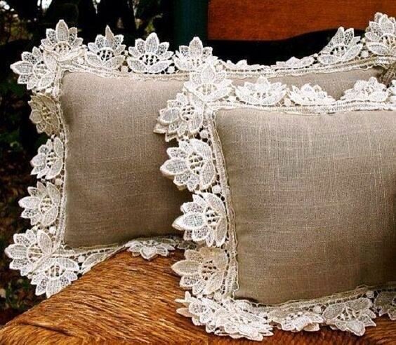 Декоративные подушки - пожалуй, один из самых недорогих и быстрых способов изменить дизайн комнаты. Особенно, если угадать с цветовой гаммой, формой и размерами. Такие подушки можно приобрести в магазине, или же сшить самостоятельно в домашних условиях. Но, прежде чем совершать покупку или садиться за швейную машину, нужно предварительно знать, какие именно подушки подходят для нашего интерьера. Чтобы облегчить поиски идей декоративных подушек, предлагаем за чашечкой ароматного чая рассмотреть вместе с нами несколько вариантов. Мешковина и кружева Сочетание грубого льняного полотна и изящного кружева - подушки, которые подойдут практически для любого интерьера. Цвета ткани и кружева могут варьироваться. Рюши и воланы Декоративные подушки, сшитые из тонкого батиста и украшенные воланами, кружевами и рюшами, идеально впишутся в спальный интерьер. Подушка-бант Необычный крой подушки привлекает своей оригинальностью и изысканностью. Такая декоративная подушка подойдет для любого интерьер