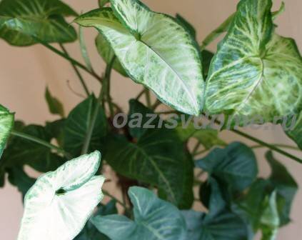 Лиана довольно устойчива к вредителям и болезням. Однако ошибки в уходе и неблагоприятные для ее выращивания условия могут привести к появлению вредоносных насекомых и к потере декоративности листьев. МОЖНО ЛИ ДЕРЖАТЬ СИНГОНИУМ ДОМА УЗНАЙТЕ ЗДЕСЬ: OAZISVDOME.RU Сингониум и вредители Из вредителей на цветке могут поселиться щитовки, трипсы, тля, паутинный клещ, которые питаются соком растения. Если на сингониуме желтеют листья, засыхают и опадают, а сама лиана замедлила рост, нужно внимательно осмотреть листочки и побеги. Что делать, если обнаружены вредители? Избавиться от них можно с помощью специальных инсектицидных препаратов – Дециса, Актеллика, Фитоверма. Использовать инсектициды следует по инструкции. У сингониума сохнут листья - что делать? Темнеть и сохнуть кончики листьев могут из-за сухого воздуха в доме. Чаще опрыскивайте лиану, уберите ее подальше от работающих батарей или поставьте на поддон с влажным керамзитом. Пятна на листьях сингониума Причин может быть несколько: