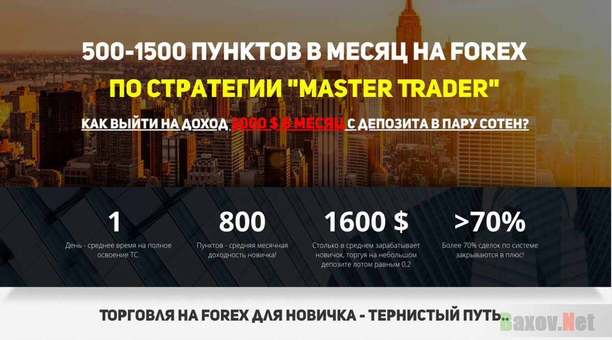 Большинство желает начать зарабатывать на торгах использовав форекс площадку. Такая популярность связанна с преимуществом заработка денег, можно производить торги в любое время, все зависит от желания заработать деньги. Как показывает практика не все могут начать продуктивно вести торги, так как для этого требуются определенные знания и опыт. Поэтому опытные брокеры решили создавать уникальные и индивидуальные курсы обучения, рассказывать о эффективных и выгодных стратегиях заработка. Проект Master Trade предлагает возможность выйти на заработок в 3 000 долларов, используя уникальную стратегию. Известные названия проекта Ссылки на сайт проекта E-mail адреса проекта Внимание! мошенники очень часто меняют адреса своих лохотронов. Поэтому название, адрес сайта или email может быть другим! Если Вы не нашли в списке нужный адрес, но лохотрон очень похож на описанный, пожалуйста свяжитесь с нами или напишите об этом в комментариях! Информация о проекте Master Trader Автором стратегии зара