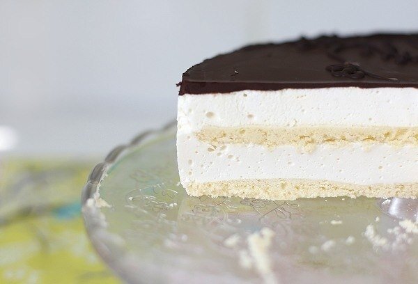 Большое спасибо нашим читателям! Пусть вкусные рецепты будут всегда с вами. Если вам понравился рецепт, поставьте нам "Лайк" 👍 внизу статьи. Приятного аппетита! Ингредиенты: Коржи: 100г масла 100г сахара 2 яйца 140г муки ванильный экстракт Суфле: 2 белка (60г) 460г сахара 1\2ч.л. лимонной кислоты 4г (2ч.л. без горки) агара 200г масла 100г сгущенки ванилин или ванильный экстракт Глазурь: 75г шоколада 50г масла Приготовление: Делаем коржи. Взбиваем масло с сахаром, пока не посветлеет. Добавить по одному яйца, тщательно взбивая до загустения. Всыпать муку и добавить ванильный экстракт, замесить тесто. Готовое тесто размазать на бумаге для выпечки в два круга по размеру будущего торта. Выпекать 10 минут при 230С. На еще горячие коржи поставить форму; если коржи великоваты - подрезать. Остудить, не снимая бумаги. Осторожно, коржи ломкие! Сделать суфле. Предварительно замочить агар-агар в 150 г воды. Воду с разбухшим агаром поставить на небольшой огонь и при постоянном помешивании довес