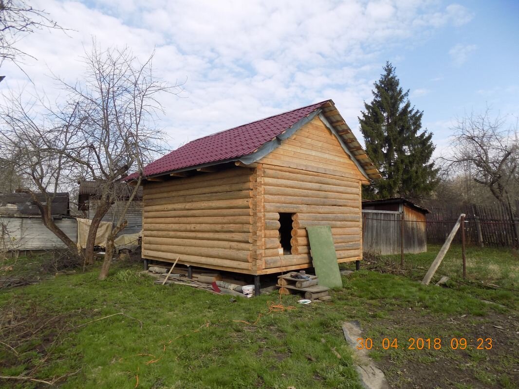 В этой статье я Вам покажу как происходил процесс отделки сруба бани 6х4 , а так же укажу на ошибки которые лучше не совершать . Как говорится лучше учиться на чужих ошибках чем на своих .Этой бане так же не повезло . И так поехали . Моё мнение срубы лучше устанавливать на ленточный фундамент , но не все идут на это ,считают дорого . Лучше на куриных ножках ,но дешевле . Заказывая сруб не учитывают вырубку , которая потом уменьшится при отделке устройство полов минус 20 см врезка потолочных лаг ( не известно как этот сруб срублен ) минус 10 см примерно . И что мы имеем , допустим нам предлагают купить сруб с вырубкой 2м30 см отнимаем 30 см = 2метра будет от пола до потолка .Анализируем дальше , сруб свежий ещё даст усадку вниз ( как наши деды говорили сколько венцов столько и сантиметров при среднем диаметре бревна 22-25 см. ) И последнее условие которое практически ни кто не выполняет ,что бы выполнить качественную отделку, сруб должен простоять под крышей при