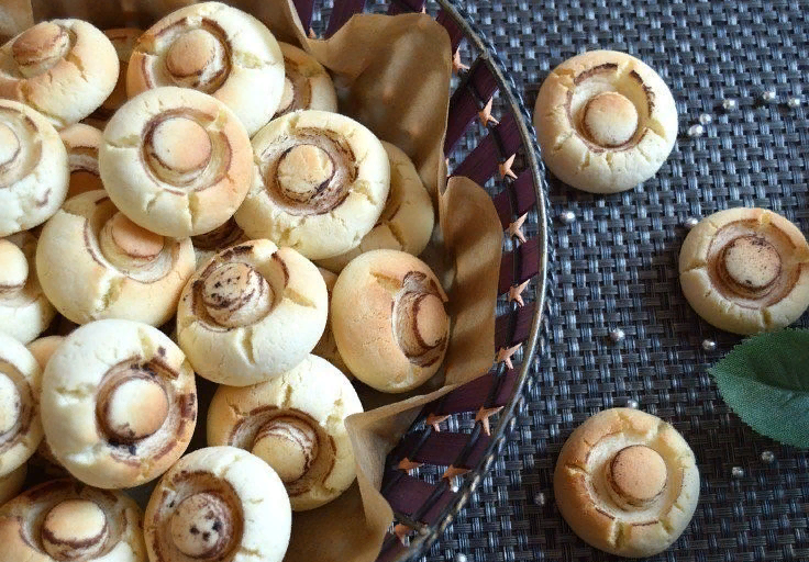 Впервые услышали о таком необычном лакомстве с оригинально подачей? Вы даже не представляете насколько всё просто и, знаете, ещё и очень вкусно. Такое печенье обожают детки, да и взрослые вряд ли откажутся. Сахарная пудра 150 грамм Крахмал 2 ст.л. Мука пшеничная около 1,5 стакана Разрыхлитель 1 уп. Яйца куриные 2 шт. Масло сливочное 220 грамм Какао 1-1,5 ст.л. и корица 0,5 ч.л. Для начала взобьём масло с сахарной пудры, для этого его нужно размягчить до комнатной температуры. К ним же добавим яйца и все сыпучие ингредиенты, кроме какао и корицы. Их смешаем в отдельной мисочке. Замесив тест о накройте его пищевой пленкой и уберите в холод на 25 минут. Достав разделите на небольшие шарики, у меня выходит около 40-50 шт. Размер выбирайте, как гриб шампиньон. Затем выкладываем их на небольшом расстоянии на противень, покрытый специальной бумагой. Берем трубочку ( диаметр около 1,5 см.), окунаем её в смесь с какао и корицей и надавливаем на середину будущего печенья, тем самым сделав н