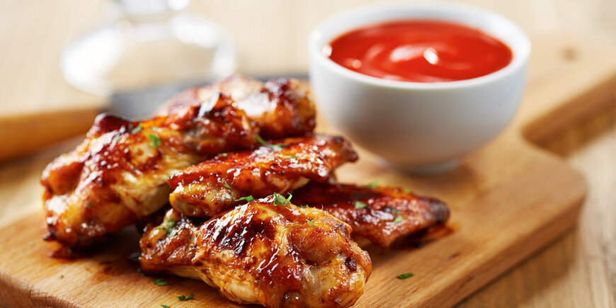 Сегодня приготовим вкуснейшие крылышки! Куриные крылышки в медово-соевом соусе будут всегда присутствовать на Вашем столе! Нам понадобиться: -Куриные крылышки 1 кг; -Соевый соус 4 ст. ложки; -Мед 2 ст. ложки; -Масло оливковое 2 ст. ложки; -Томатная паста 1 ст. ложка; -Чеснок 1-2 зубчика; -Соль, перец. Приготовление: Куриные крылышки следует промыть и убрать лишнюю влагу. Приготовим соус. Смешаем соевый соус с медом. Выдавим через пресс чеснок, добавим соль и перец. В полученную смесь добавим ложку томатной пасты, можно использовать кетчуп. Готовым соусом зальем куриные крылья и уберем мариноваться на 2 часа в холодильник. Замаринованные крылышки выкладываем на противень предварительно застеленный бумагой для выпечки или фольгой. Остаток соуса выливаем сверху. Ставим в разогретую до 200 градусов духовку на 30-40 минут. Перед подачей украсить зеленью! Приятного аппетита! Подписывайтесь на канал! Ставьте лайки! Удачи!