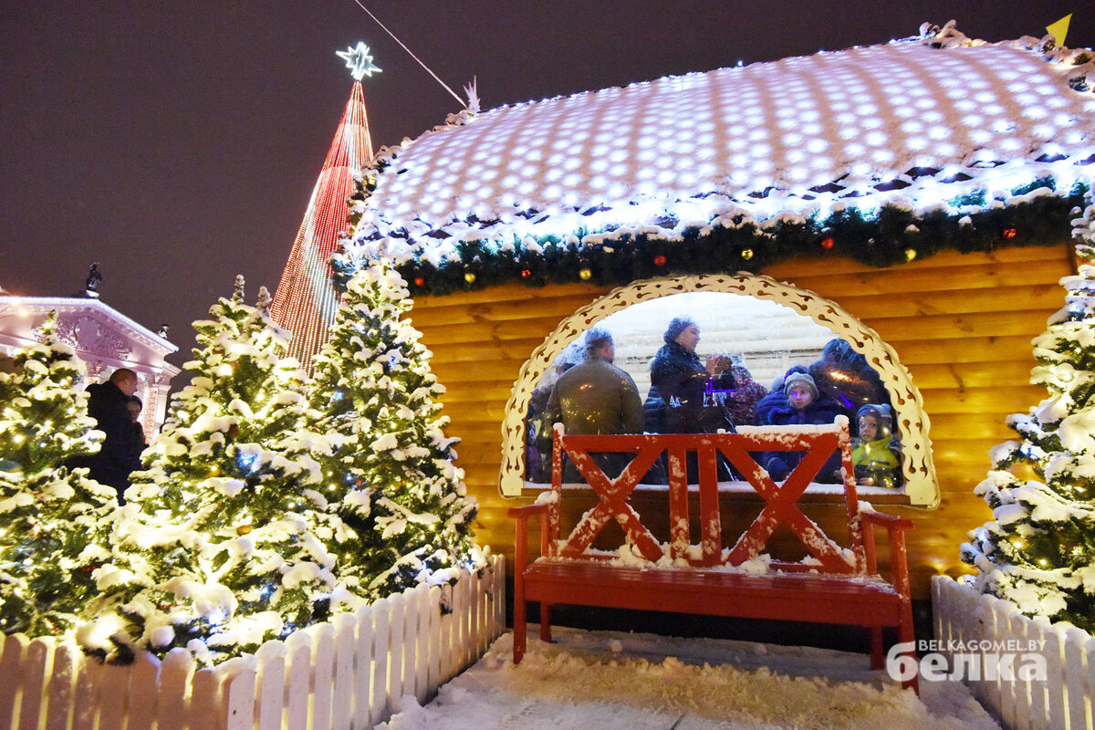 На площади Ленина областного центра презентовали резиденцию Деда Мороза. С 25 декабря зимний волшебник будет встречать детей и взрослых в празднично украшенной избушке и дарить сладкие сувениры за рассказанные стихи и отгаданные загадки. На презентацию сказочной резиденции пришли сотни юных гомельчан, которых встречали Дед Мороз, Снегурочка и лесные помощники. Каждый мог сделать оригинальное селфи на фоне главной городской ёлки в окружении любимых новогодних персонажей. Ангелине Ревенок всего полтора года, на праздник она приехала с мамой из другого района города. Полуторагодовалая Ангелина Ревенок с мамой Татьяной. – Ангелина хоть и маленькая, но уже просится в общий хоровод, радуется наступающему празднику, – улыбается Татьяна Ревенок. – Да и мы, взрослые, получили массу впечатлений. Хватит на год вперёд. Ёлка в этом году в Гомеле просто чудо! Так что действительно как будто в сказку попали. Павел Лисунов пришёл на праздник с сыновьями – Ильёй и Димой. Детей впечатлили конкурсы у г