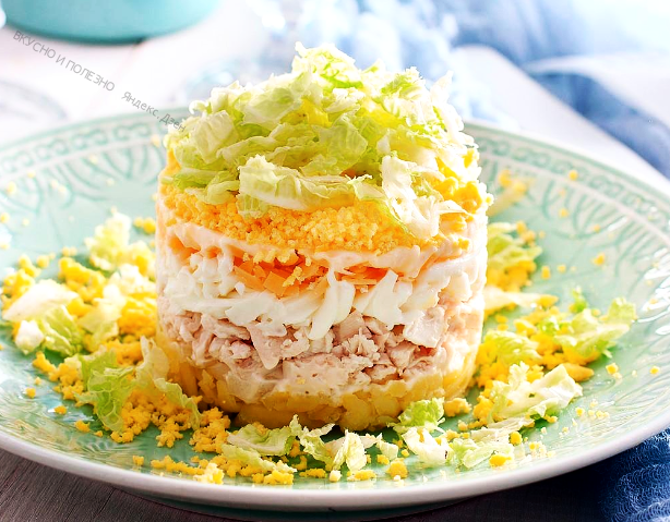 Салат "Лебединый пух" с пекинской капустой и курицей