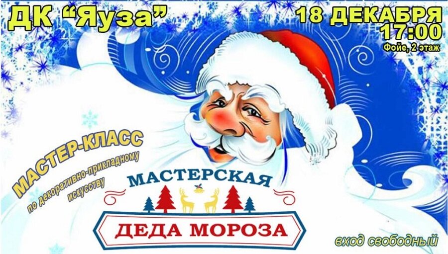 18 декабря во Дворце культуры «Яуза» состоится мастер-класс по декоративно-прикладному искусству «Мастерская Деда Мороза».