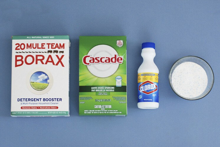 Как бы часто я не меняла постельное бельё и чехол для подушки, они всё равно желтеют. Реальная жизнь такова, что какими чистюлями мы бы не были, кожное сало, пот выделяются и остаются на поверхности наших постельных принадлежностей во время сна. Из-за этого со временем они начинают желтеть. Я уже думала обновить свои подушки, но потом я нашла в интернете способ, которым можно вернуть подушкам первоначальный вид. Я не ожидала такого эффекта. Мне буквально хотелось поделится со всеми этим рецептом. Вот что нам понадобится: • 1 стакан стирального порошка • 1 стакан сухого средства для посудомоечной машины • 1 чашка отбеливателя (подойдет и не хлорный), но я использовала обычный. • 0.5 стакана буры (тетраборат натрия) Этим количеством можно перестирать все подушки в доме. Поэтому уменьшайте пропорционально вашим объёмам. Для начала убедитесь, что вашу подушку можно стирать. Отыщите этикетку. К счастью, большинство пуховых и синтетических подушек можно стирать. Не забудьте