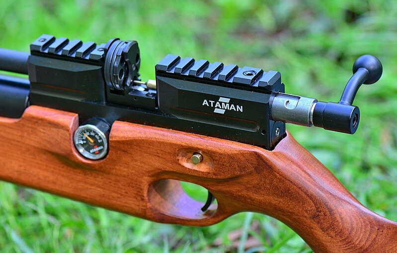 Внимание! Охота с пневматическими ружьями на территории РФ запрещена, данная информация предоставлена только в целях ознакомления. Соблюдайте правила охоты и законодательства вашей страны. Данная пневматическая винтовка представлена одной из лучших фирм рынка - АТАМАН. За основу этого зверя производители взяли одну из своих предыдущих моделей - АТАМАН ULTRA-C M2R 715/RB. Новинка является дополнением к стартовой версии винтовки, которая порадовала принципиально-новым пружинно-поршневым механизмом и использованием без лицензии. Отличия между комплектациями Несмотря на общий прототип, отличия между стартовой и охотничьей версией все же существенные: - калибр 6,35 миллиметра вместо 5,5. Калибр был увеличен для более безопасной и успешной охоты; - длина ствола 410 миллиметров в охотничьей версии и 280 в базовой, что позволило ускорить пулю с 256 метров секунду до 280. - мощность. Как заявляет производитель, мощность 86 джоулей - хороший показатель для подобного рода винтовок. Итак, срав