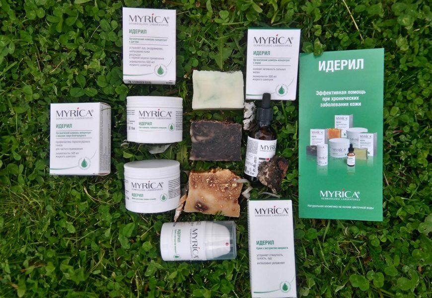 У бренда MYRICA есть целая линия средств против перхоти, себорейного дерматита и себореи – Идерил, в которую входят органический шампунь-концентрат, крем с амарантом, маска для кожи головы и волос, пре-шампунь глубокого очищения.