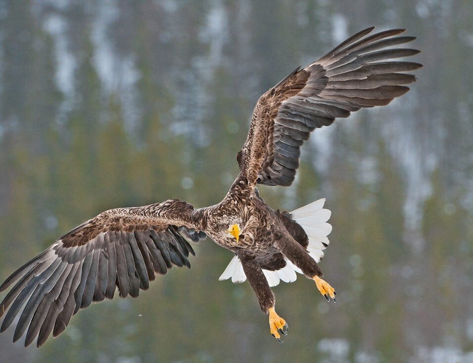 Орлан-белохвост (Haliaeetus albicilla) – это довольно объемная птица семейства ястребиных. Максимальная длина тела этого вида птиц составляет около 1 метра, а масса взрослого птенца достигает более 5 кг.